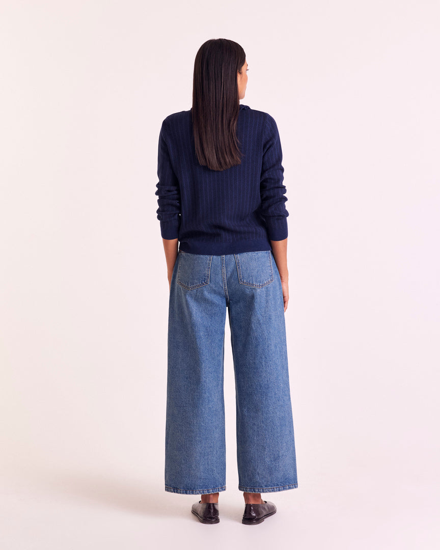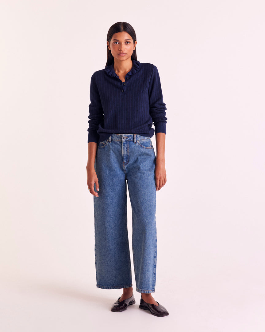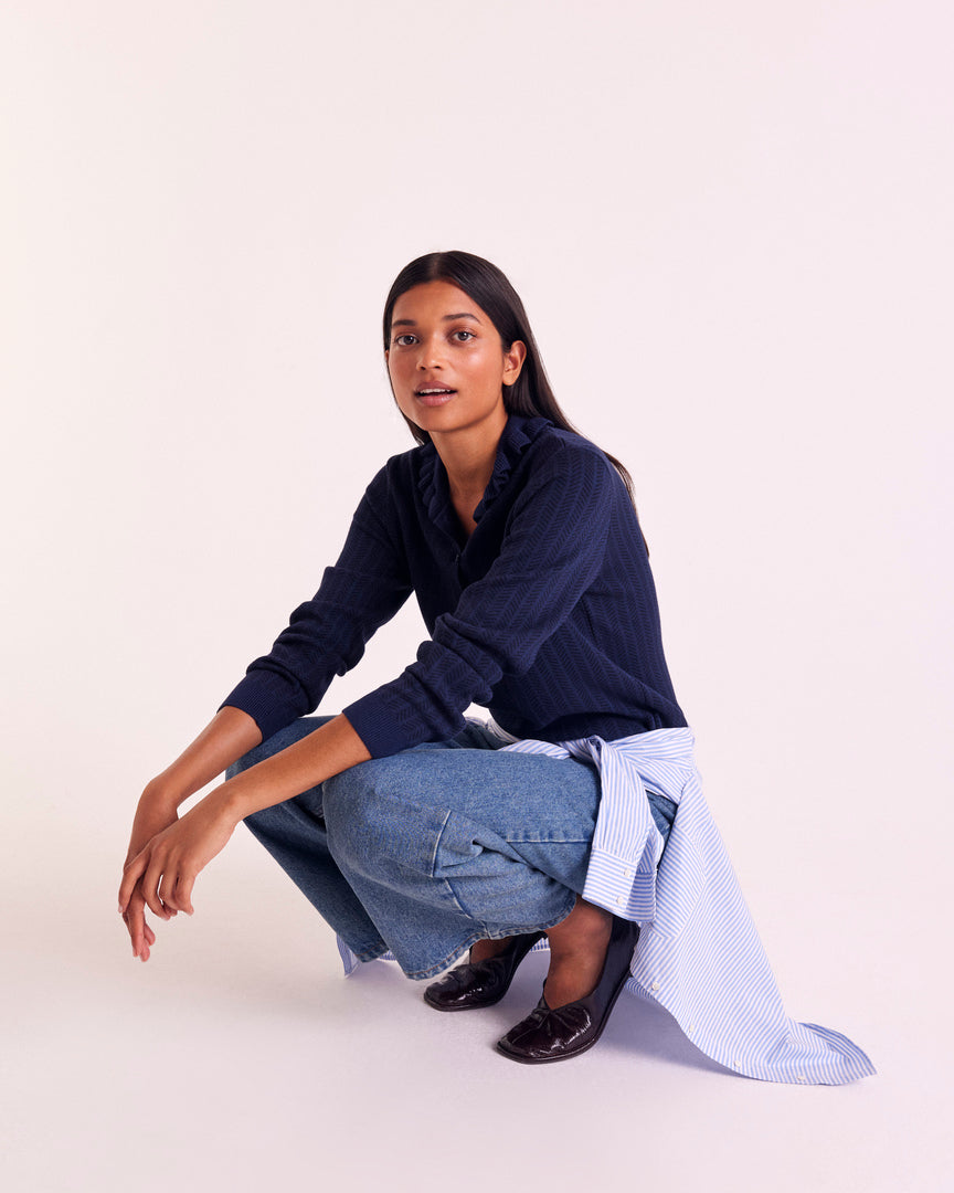 With its playful textures and classic navy color, Tadéo stands out with its meticulous details. A must-have piece for an elegant and modern wardrobe.