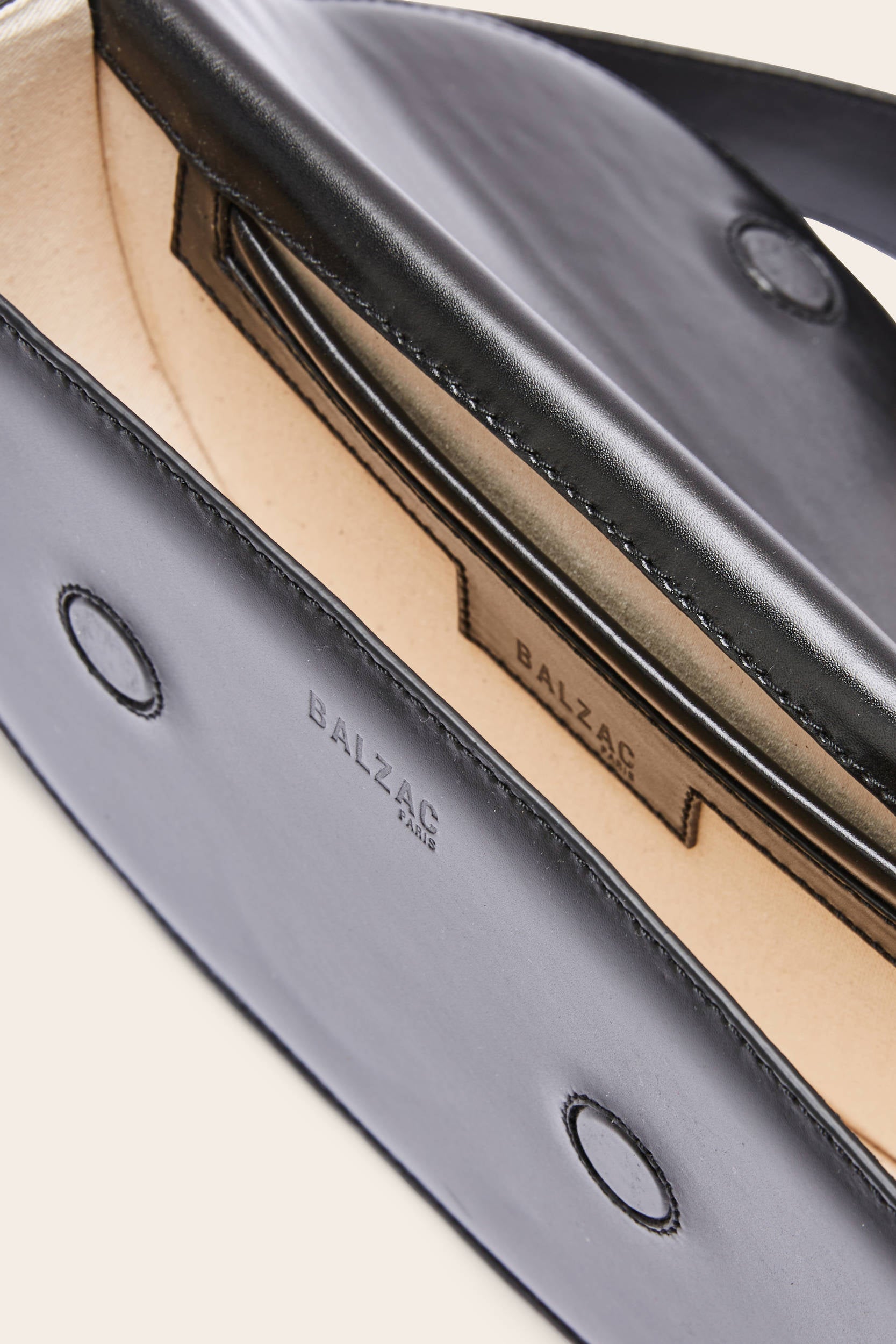With its elegant half-moon shape and sleek silhouette, Maé asserts a look that is both modern and timeless. It is adorned with an exclusive gold metallic piece, directly inspired by our Balzac Paris monogram.