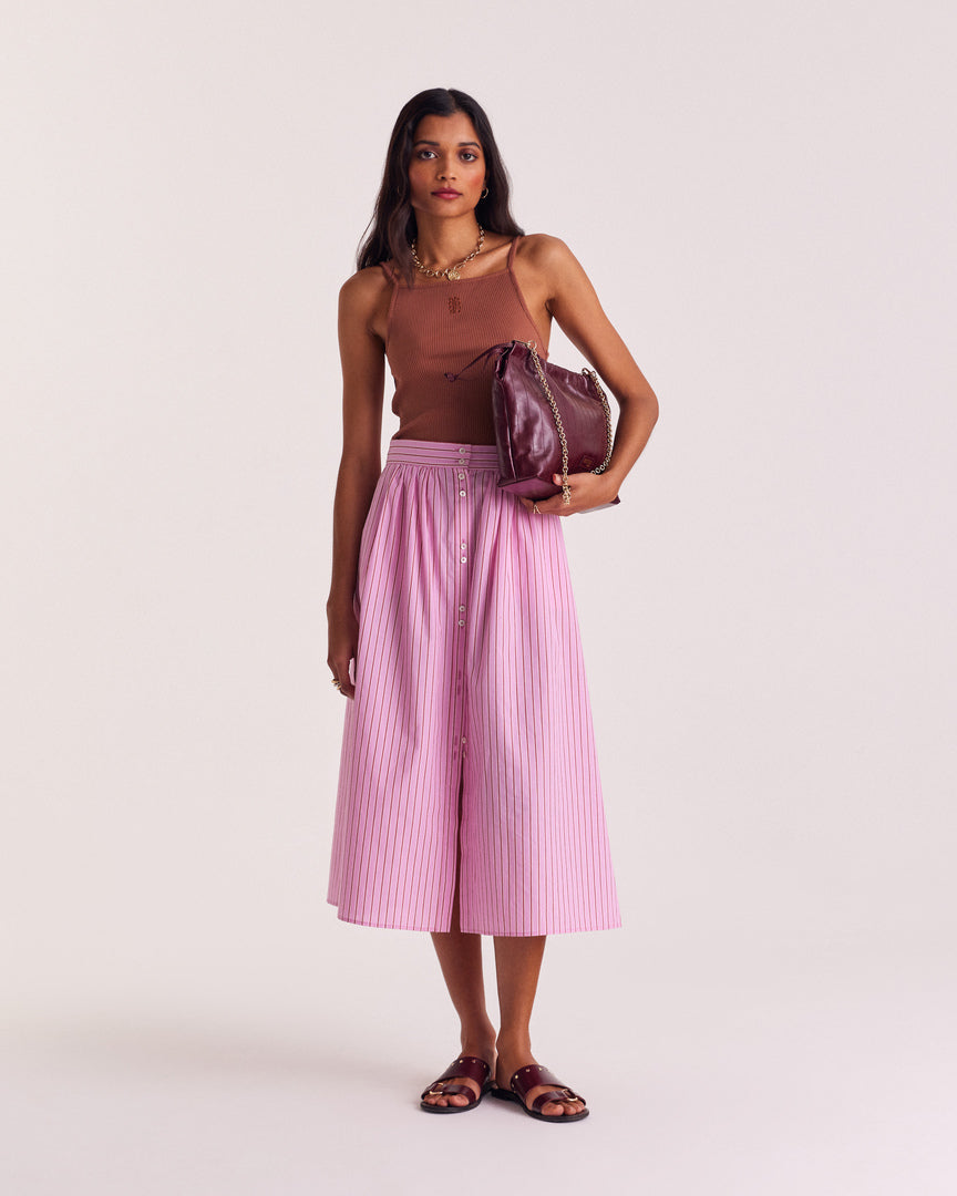 Le top Clem canelle insuffle un vent de fraîcheur à votre vestiaire et révèle de jolies épaules avec ses fines bretelles. Il se porte aussi bien en été qu'en hiver avec une chemise par dessus.