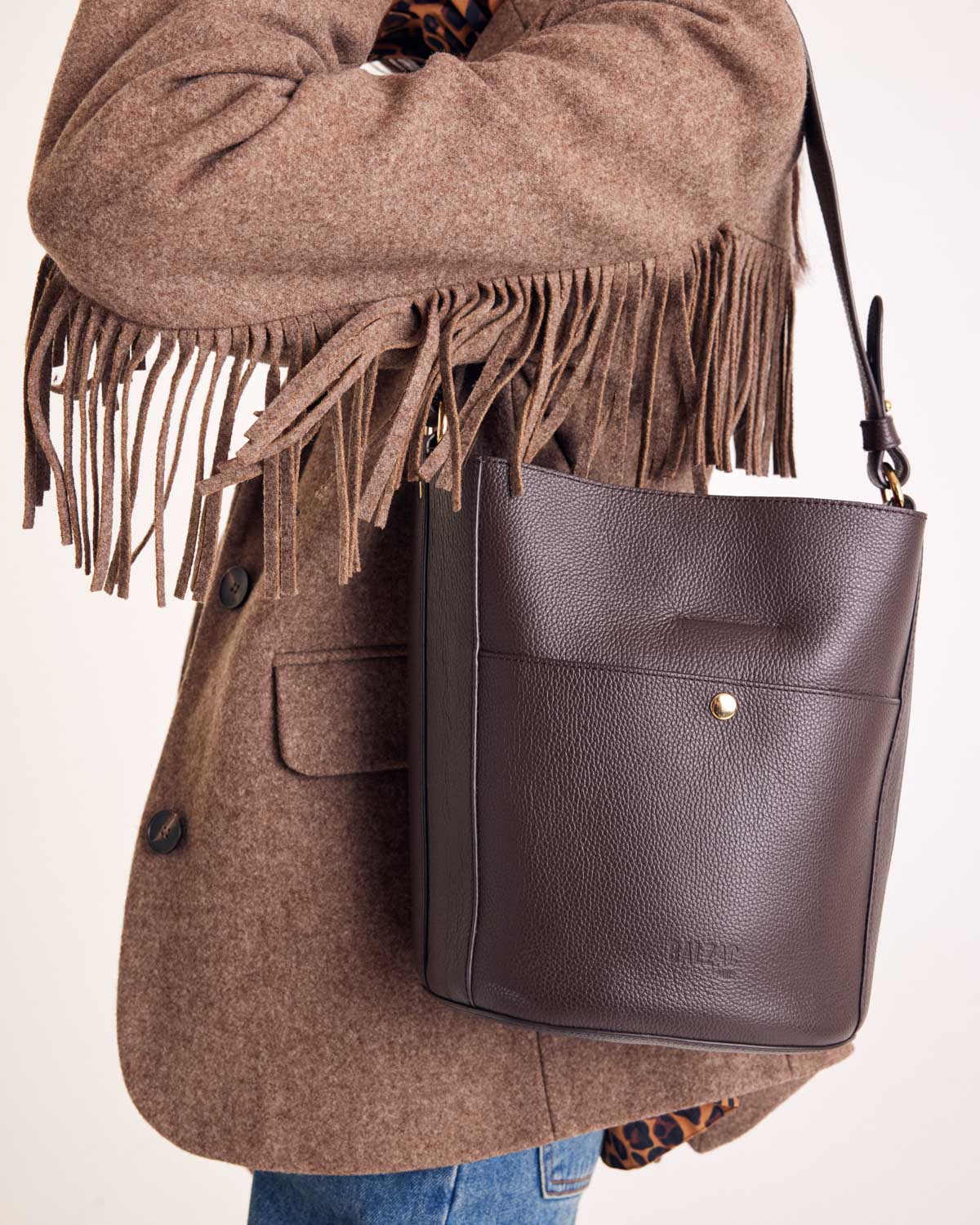 Le sac Grand Sofia chocolat intérieur bordeaux incarne une esthétique élégante et souple, aux finitions soignées et à l’allure raffinée.