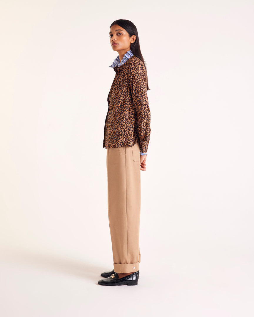 La chemise Mina ? On adore son mix d’imprimé qui se marie à merveille entre son col à rayures et le reste de sa chemise à imprimé léopard.