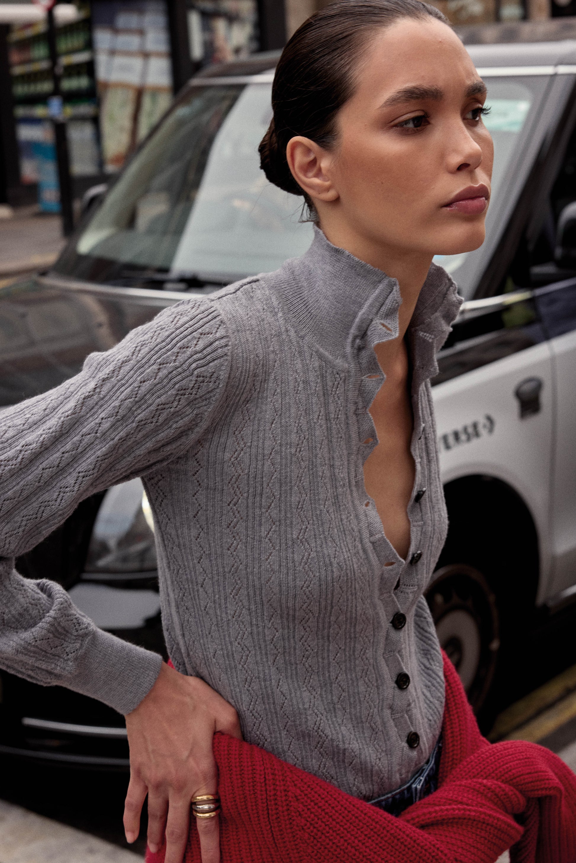 • Patte de boutonnage avec effet vague, ouvertures possibles à même la peau