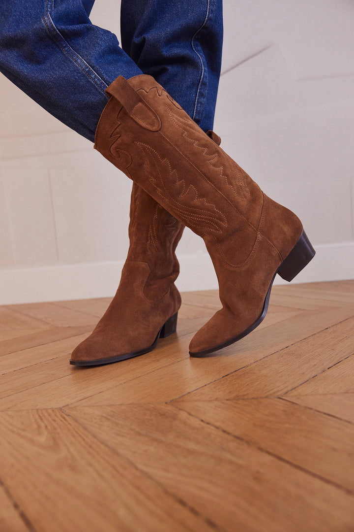 A peine enfilées, les bottes Eldorado cognac donneront du piquant à vos tenues. On aime tout particulièrement leur forme, leur talon travaillé, et les détails d’empiècements qui leur donnent une allure très moderne à laquelle on ne peut résister !