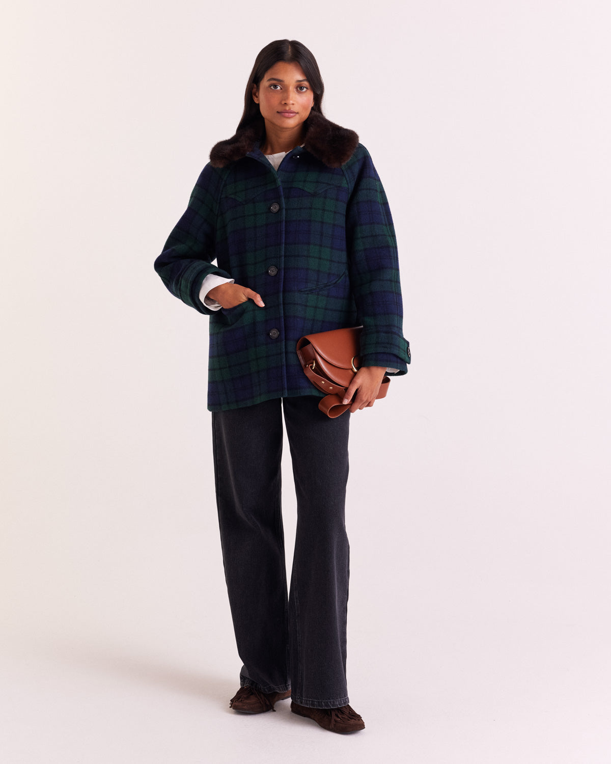 • Col amovible en fourrure (système de boutons et brides qui permet la fermeture)