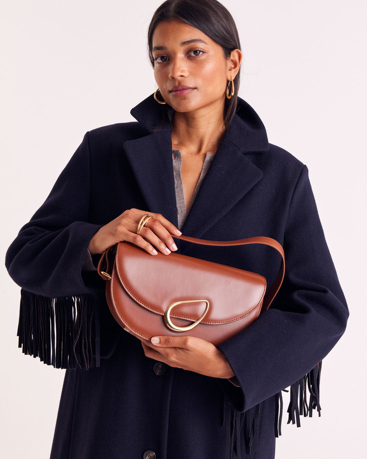 • Sac demi-lune avec pièce métallique identitaire inspirée du monogramme